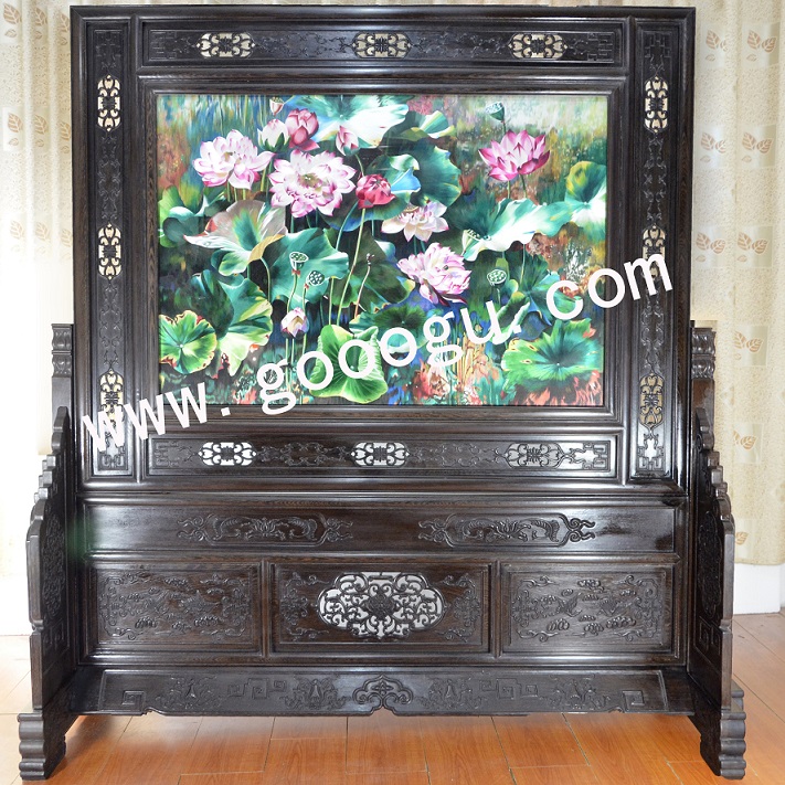 蘇繡精品屏風(fēng) 滿繡隔斷 純手工精品 荷花 中式屏風(fēng)